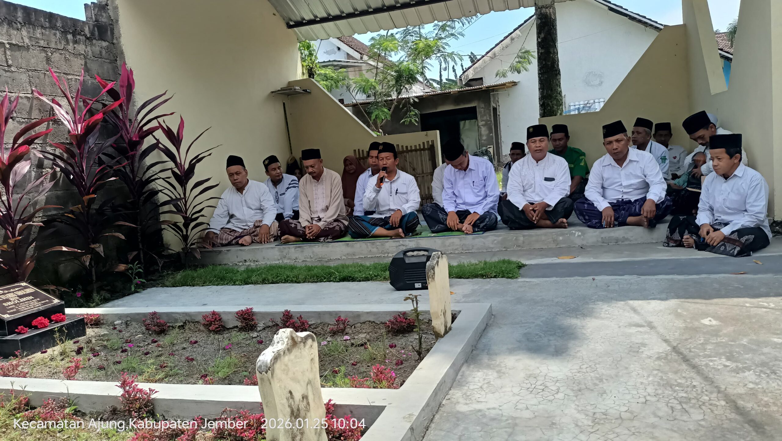 (Foto/Hafid) Rombongan Ziarah Muharrik dan Muassis NU MWCNU Ajung melaksanakan tahlil dan doa di Maqbaroh KH. Syahri Sholihin, Langsepan–Rowoindah, Minggu (25/1/2026).