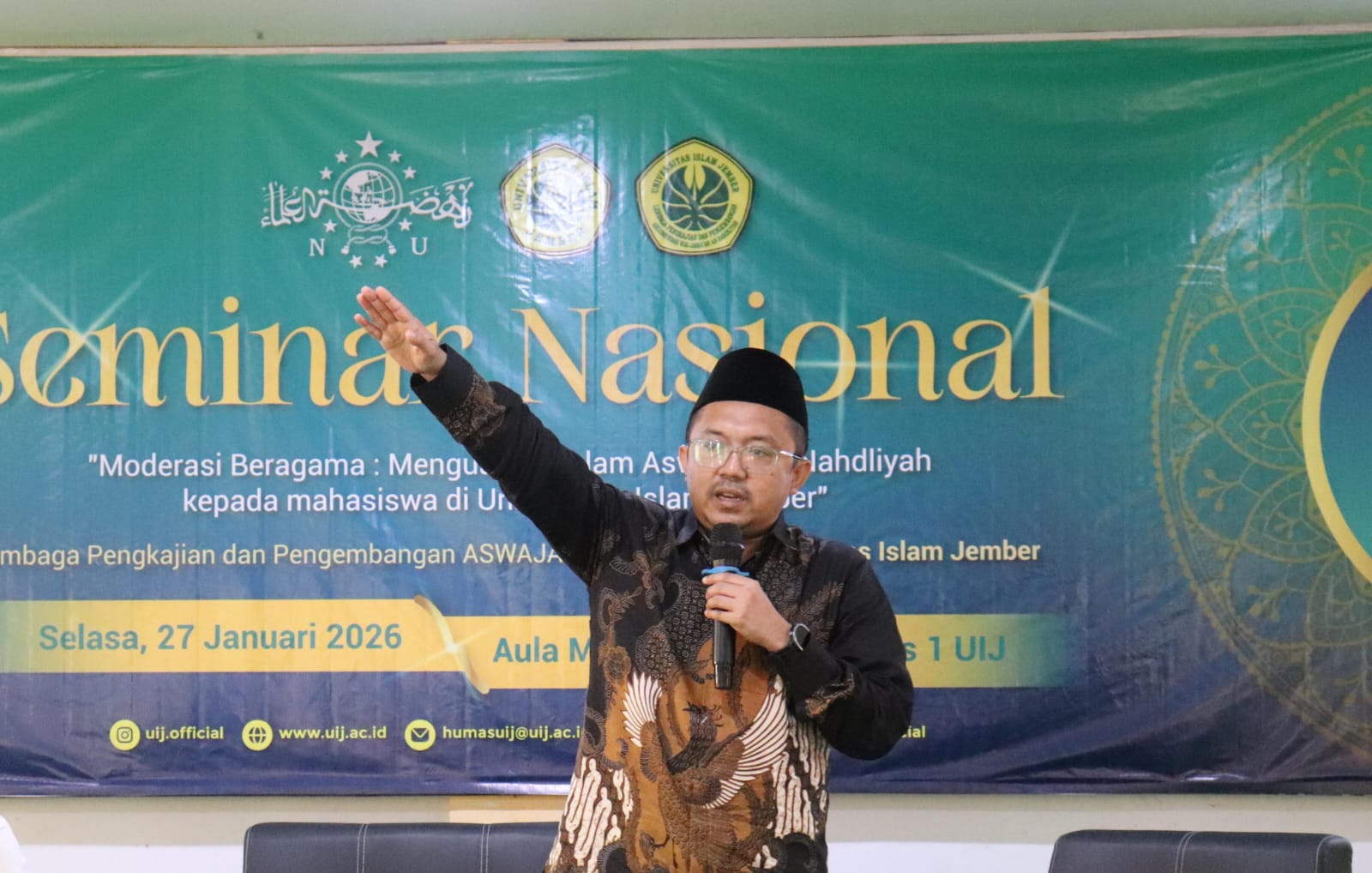 Kaliwates, pcnujember.or.id – Aula Miftahul Ulum Kampus 1 Universitas Islam Jember (UIJ) dipenuhi semangat intelektual pada Selasa (27/01/2026). Sekitar 100 peserta menghadiri Seminar Nasional yang diselenggarakan oleh Lembaga Pengkajian dan Pengembangan Ahlussunnah wal Jama’ah (Aswaja) UIJ. Kegiatan ini menjadi ruang perjumpaan antara tradisi keislaman dan dinamika generasi muda di era digital.