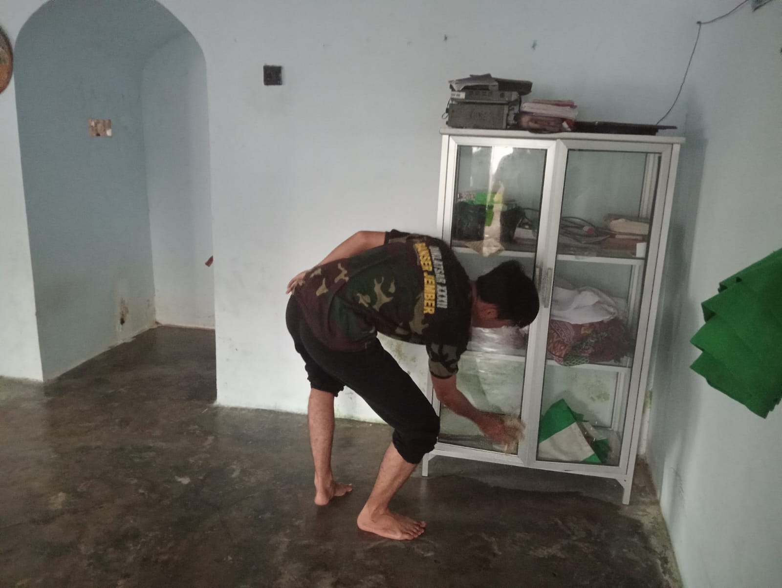Anggota PAC GP Ansor Sumberbaru melaksanakan kerja bakti membersihkan musholla dalam rangka menyambut bulan suci Ramadhan 1447 H di Kecamatan Sumberbaru, Jember, Rabu (18/2/2026). Foto: Riski Wahyudi