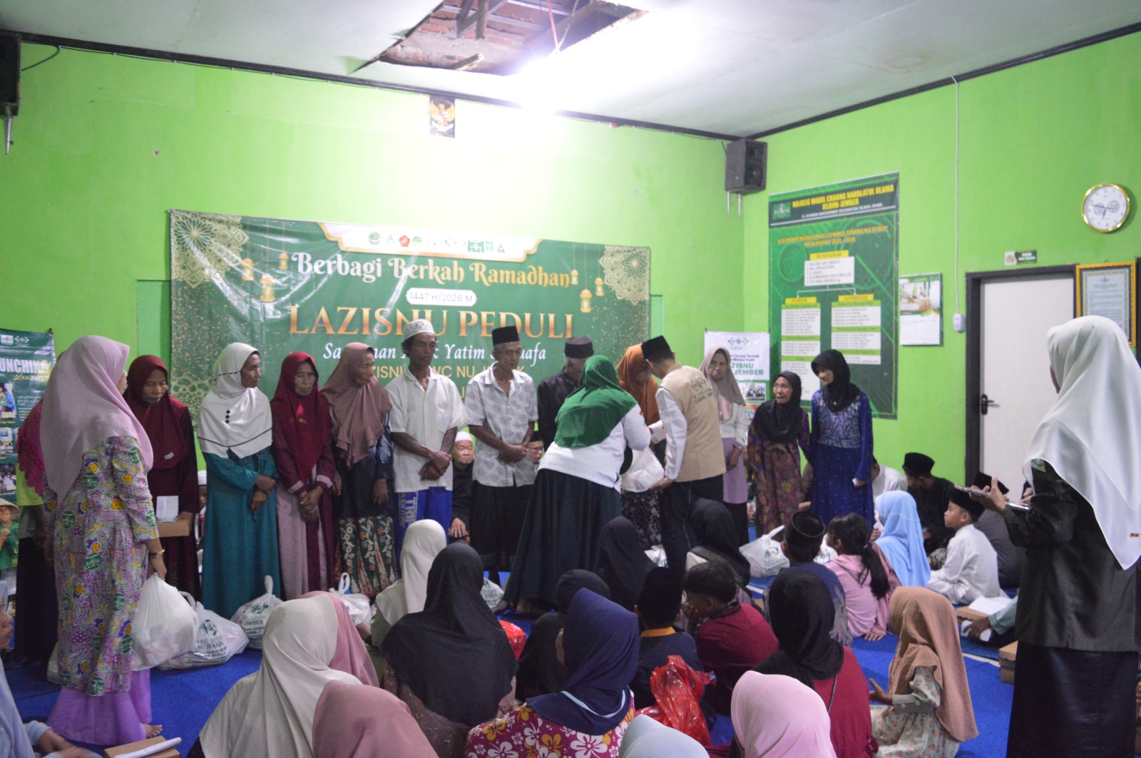 Penyerahan santunan kepada anak yatim dan dhuafa oleh pengurus LAZISNU MWCNU Jelbuk bersama LAZISNU PCNU Jember di Kantor MWCNU Jelbuk, Rabu (11/3/2026). Foto (Abdul Hamid/Lazisnu)